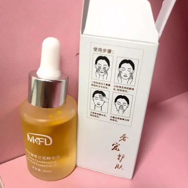 洗完脸之后,用热毛巾湿敷脸(如果天气不算很冷,或者你是用温水洗脸的话,这一步可以省去)然后滴几滴兰花精油在手心,搓热之后再按压上脸,慢慢按摩,脸上都很舒服。