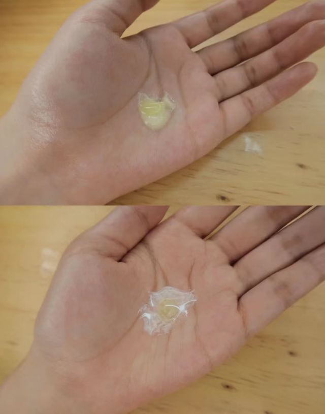 兰花精油的流动性非常强,就像是水一般,几乎没有油腻的感觉,涂抹在手上一下子就能流动开了,这样的流动性正好能够带动厚重的面霜。