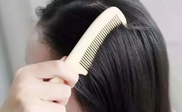 ①梳头从头顶正中央梳起,到头顶部位多按压几下,打圈按摩头皮再梳顺。