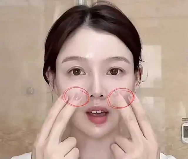 顺着法令纹的位置从下往上提拉,到颧骨再到太阳穴,重复几组同样的按摩动作。既能够有效淡化法令纹又能够提拉苹果肌,一套按摩动作两个效果。