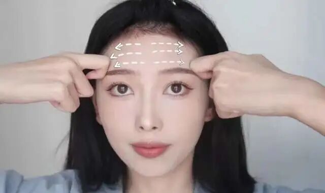 ①按摩抬头纹:抬头纹多是习惯性地抬额导致的,所以想要淡化抬头纹就不能采用向上提拉的方法。首先用食指和中指撑开额头肌肤,按摩打圈吸收并用手指关节上下轻按,能够起到拉伸皱纹的效果。
