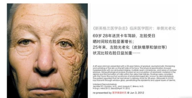 英国BBC记录片《地平线系列》中提到,虽然皮肤衰老是自然现象,但是因为紫外线的伤害而让皮肤变得老化也是更重要的因素: