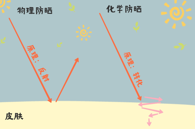 物理防晒是覆盖在皮肤表层,它就像是皮肤上的一面镜子,反射紫外线,避免紫外线直接接触到皮肤;化学防晒是吸收紫外线之后,再通过其他形态释放出来的。