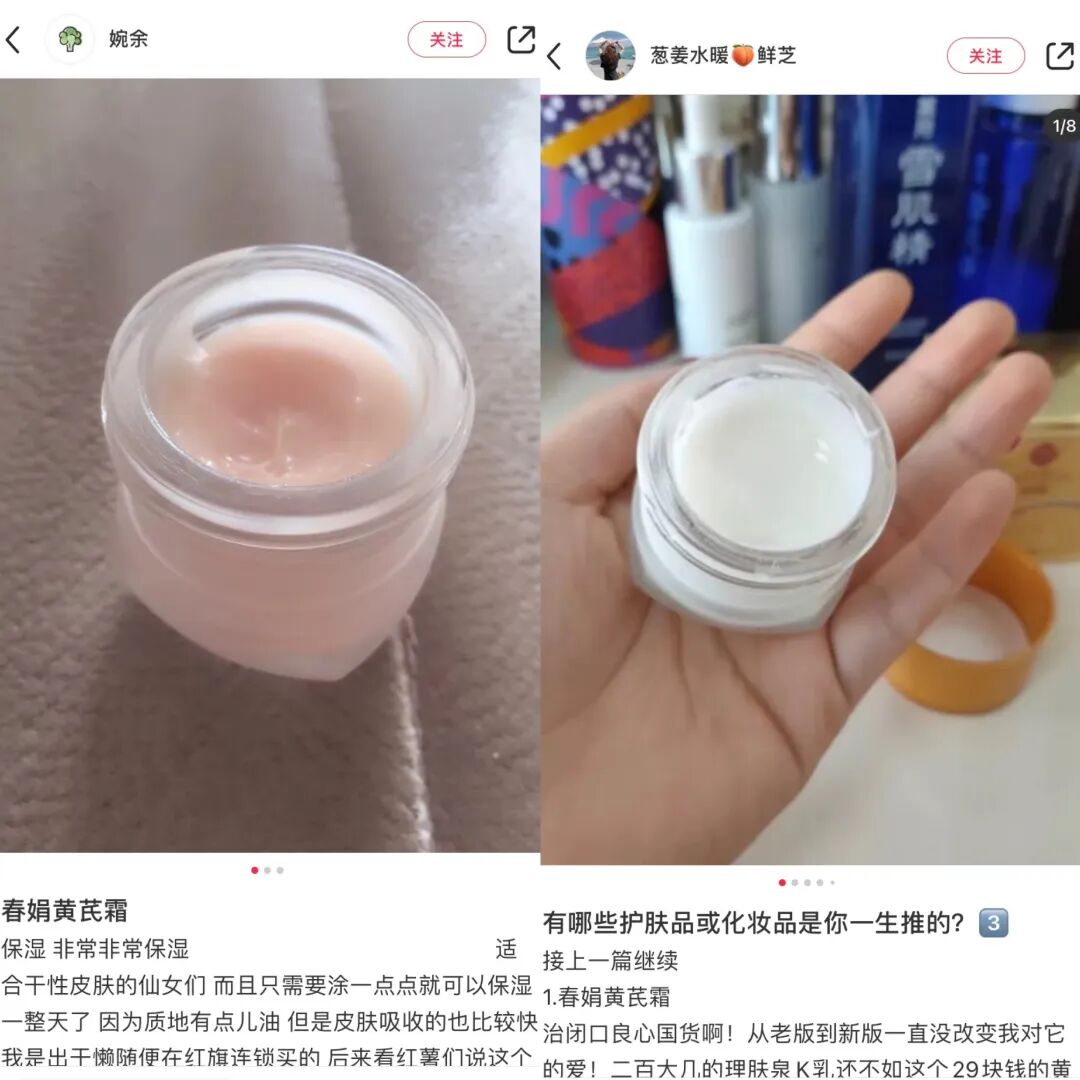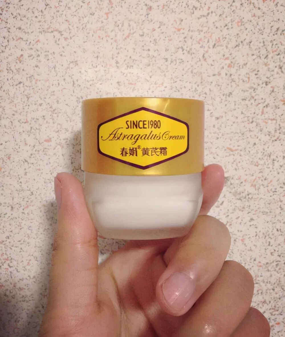 春娟黄芪霜小小一瓶,每次使用一粒珍珠大小就能涂抹整张脸,滋润保湿,非常适合入秋之后使用。