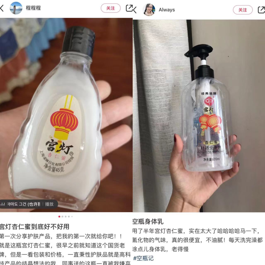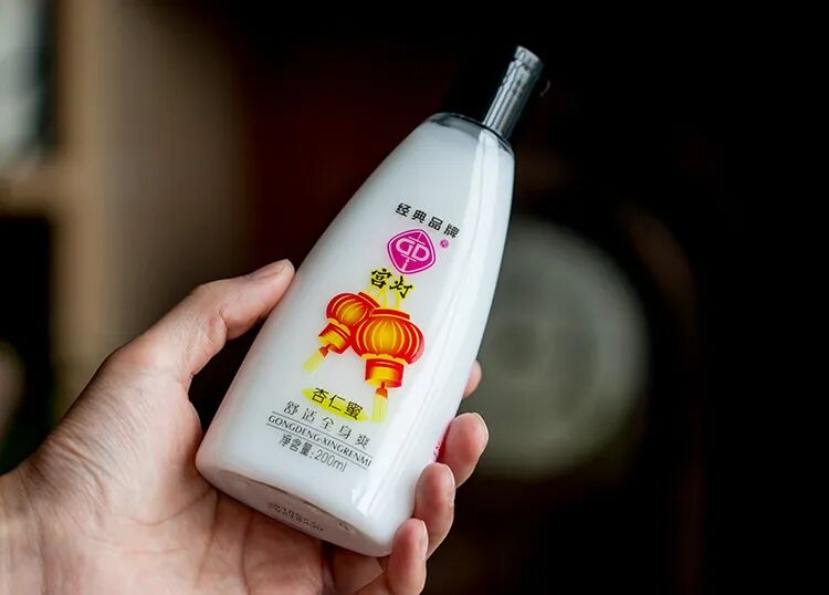 我自己用的身体乳,同样是来自于老牌国货:宫灯杏仁蜜。