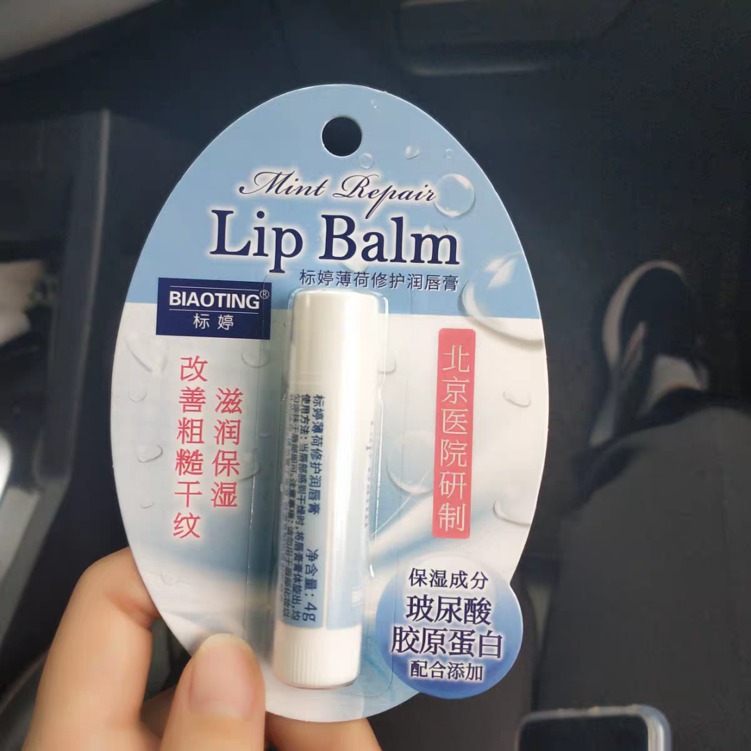 清爽的薄荷味,唇膏里还添加了玻尿酸保湿成分,有修复作用。如果你的嘴唇不仅仅是干燥,而是容易起皮,唇色暗淡,更加需要好好修复,添加了玻尿酸的唇膏更适合你。