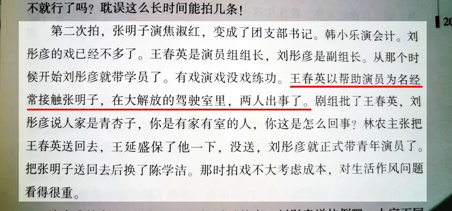 《艳阳天》人物众多,拍成电影,很多角色,只能用村民代替了。其中村民一角的扮演者王春英,也算是长影厂的老影员了,他在这个剧组中担任演员组组长。书中写道:“王春英以帮助演员为名经常接触张明子,在大解放的驾驶室里,两人出事了。剧组批了王春英,刘彤彦(剧中焦克礼扮演者)说人家是青杏子,你是有家有室的人,你这是怎么回事?林农主张把王春英送回去,王延盛保了他一下,没送,把张明子送回去后换了陈学洁。那时拍戏不大考虑成本,对生活作风问题看得很重。”