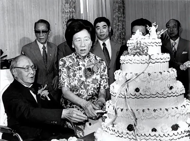 1977年,何应钦与夫人王文湘欢度结婚60周年“钻石婚”纪念。在亲友的祝福中,两人共同切一块六层的大蛋糕,同时还交换了一枚新的结婚戒指。