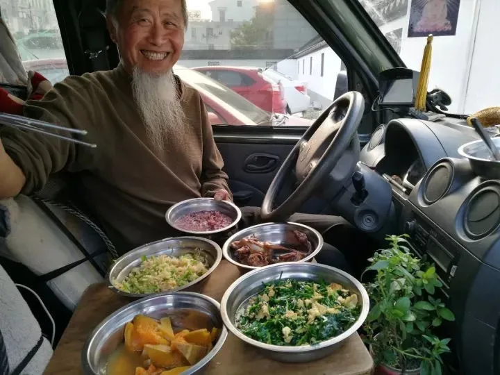 每走到一个地方,谷向东就会带着妻子到菜市场,买最新鲜的蔬菜和肉,给她做好吃的。