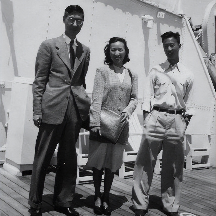 1956年,郭永怀(左一)和妻子李佩(左二)在回国的船上