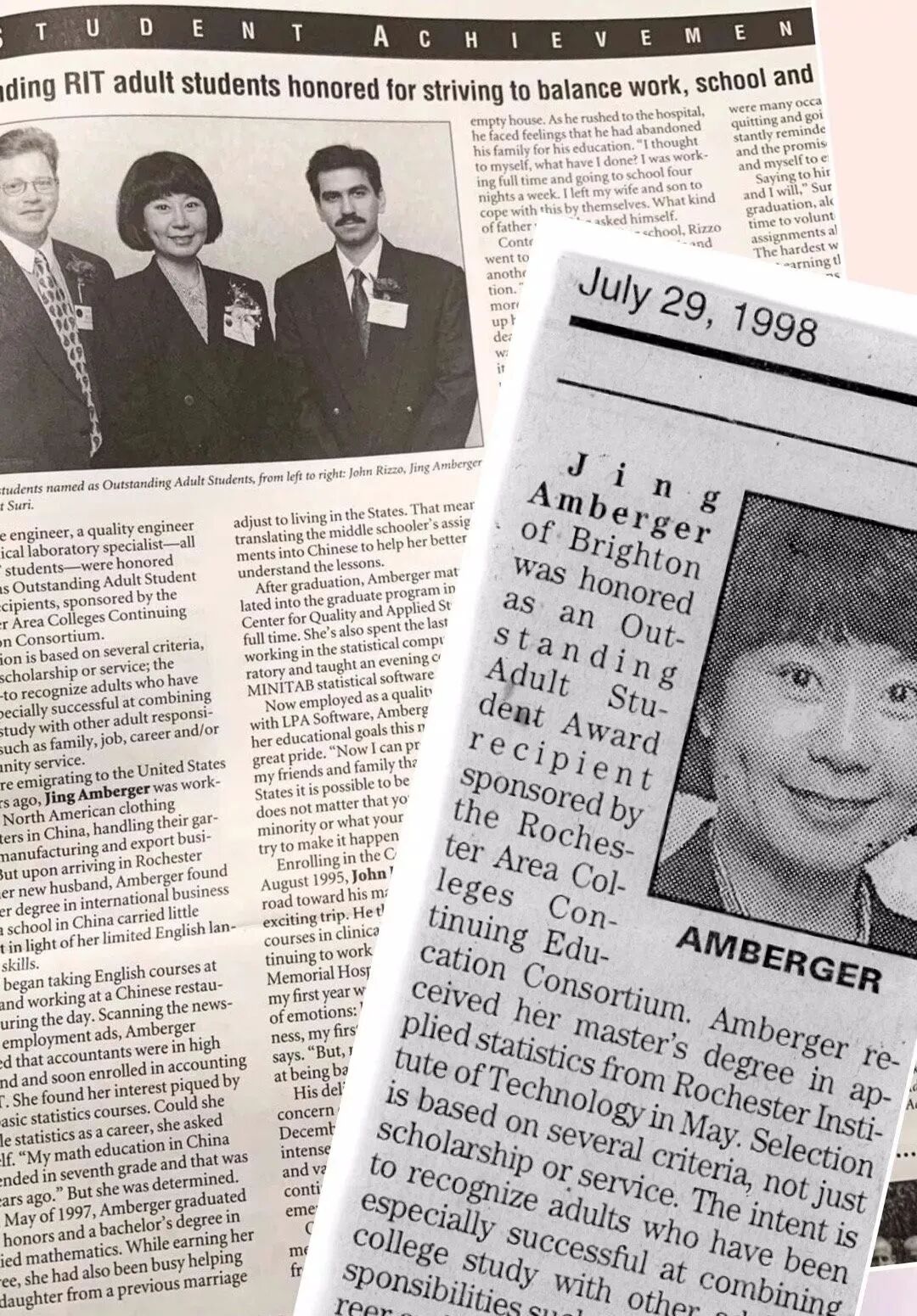 这是1998年的罗切斯特大学校报和当地报纸报道了我得到“年度最杰出学生奖”的新闻