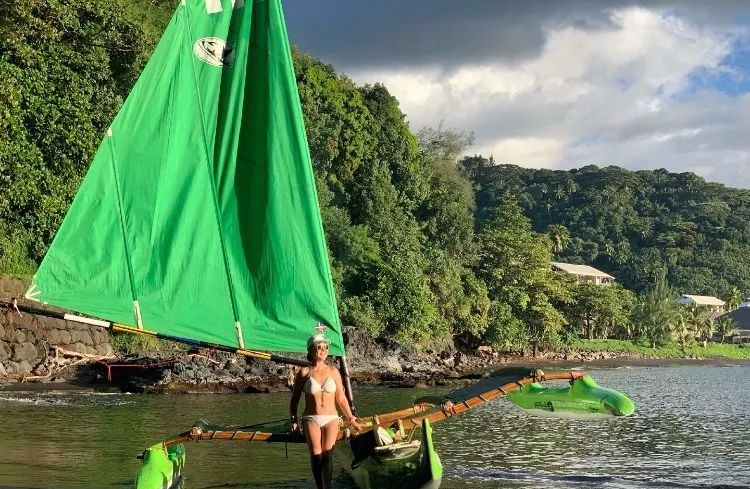2019年,我第一次体验帆船如何顶风前进,乘坐的是这种带有支架的独木舟,整个船体全部木制,只能靠帆航行。风很大,船很快,非常刺激!