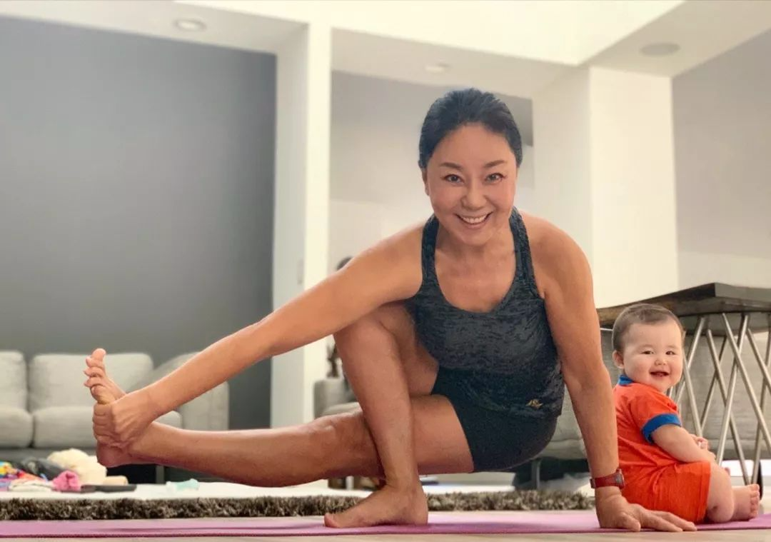 2019年夏天,我在家一边做瑜伽一边逗外孙女玩
