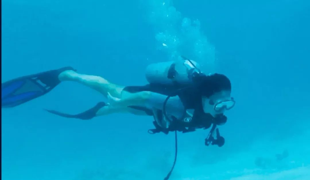 最近我迷上了潜水,一项高难度高风险的极限运动。潜水班里数我年龄最大。那有什么?当我和年轻人一起,在17度的低温下深潜下去,在海底找飞机残骸,和鱼群嬉戏,倒着看世界…别提有多开心了。