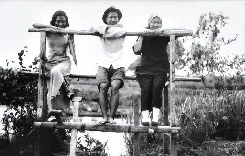 冼星海与夫人钱韵玲右一在东湖边拍电影《最后一滴血》