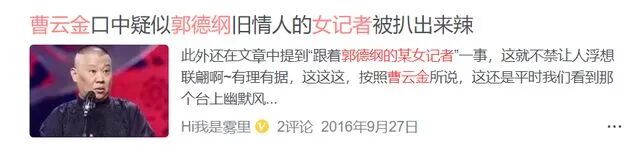 曹云金离开德云社后,爆料郭德纲生活作风有问题,并明示暗示了很多绯闻对象。