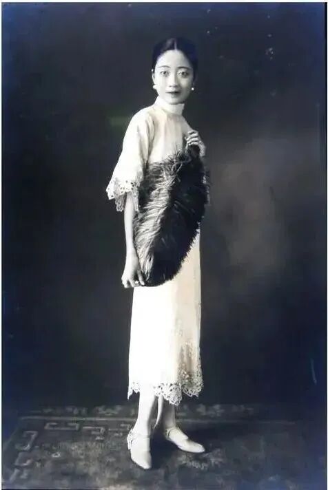 清朝末代皇后婉容站立像,一袭长裙显得身材高挑,就是今天来看也是相当时髦的。(思想者书店编辑)