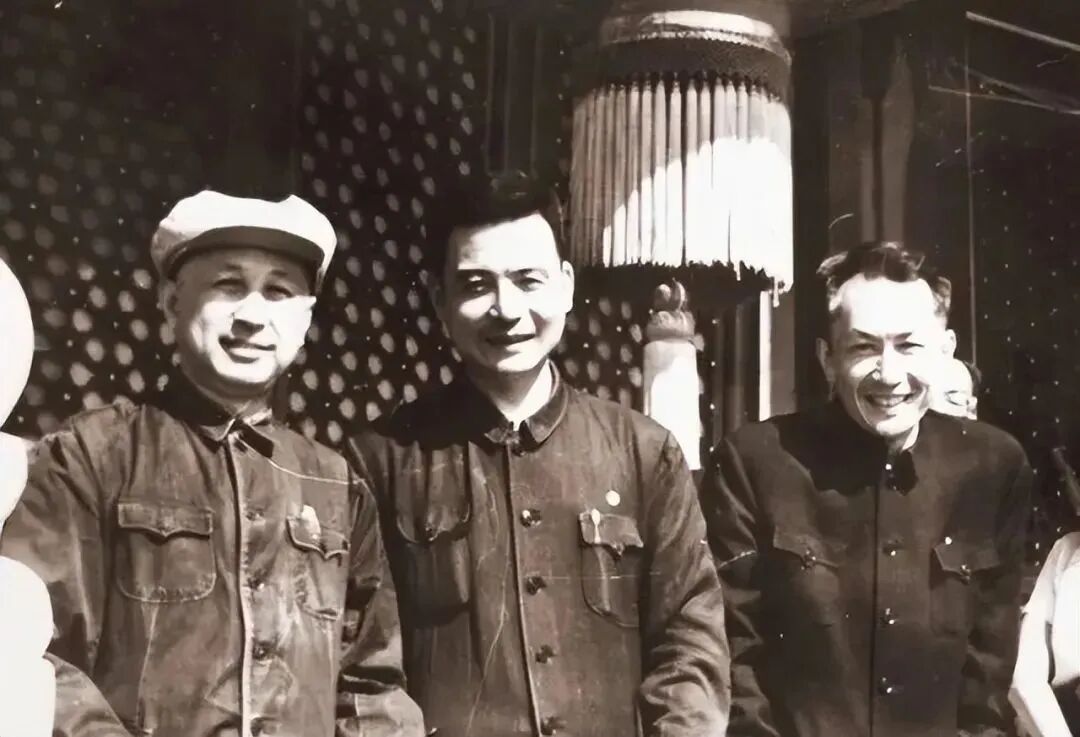 1966年,钱学森、邓稼先、朱光亚三位科学家在天安门城楼上的合影。(思想者书店编辑)