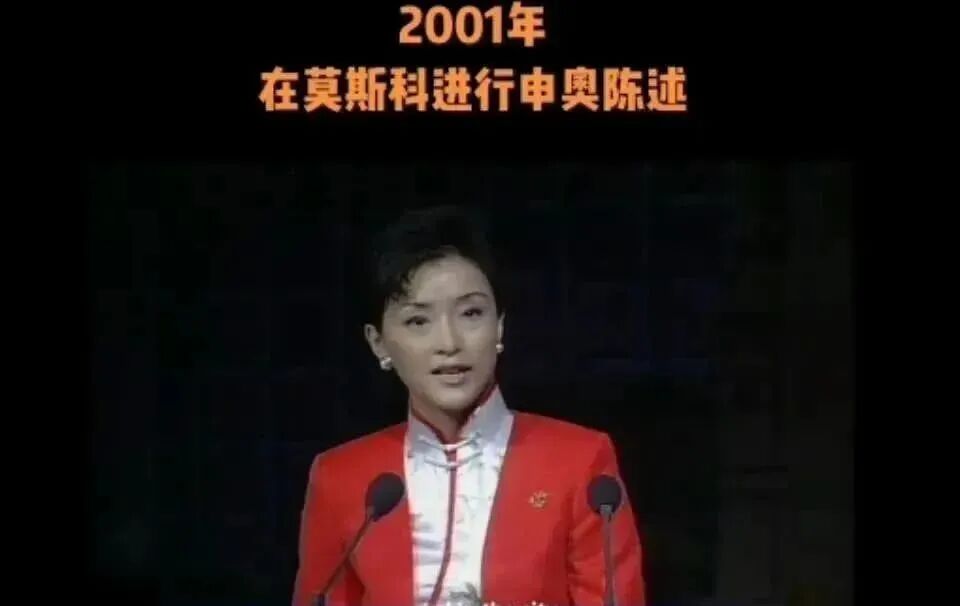 2001年,她一身红色西服,站在莫斯科进行申奥陈述,展示我泱泱大国女性风采。