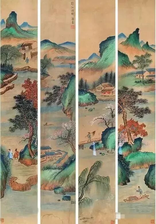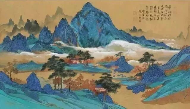 青绿山水画:中国山水画的一种,用矿物质石青、石绿作为主色,有大青绿、小青绿之分。前者多钩廓,少皴笔,着色浓重,装饰性强;后者是在水墨淡彩的基础上薄罩青绿。