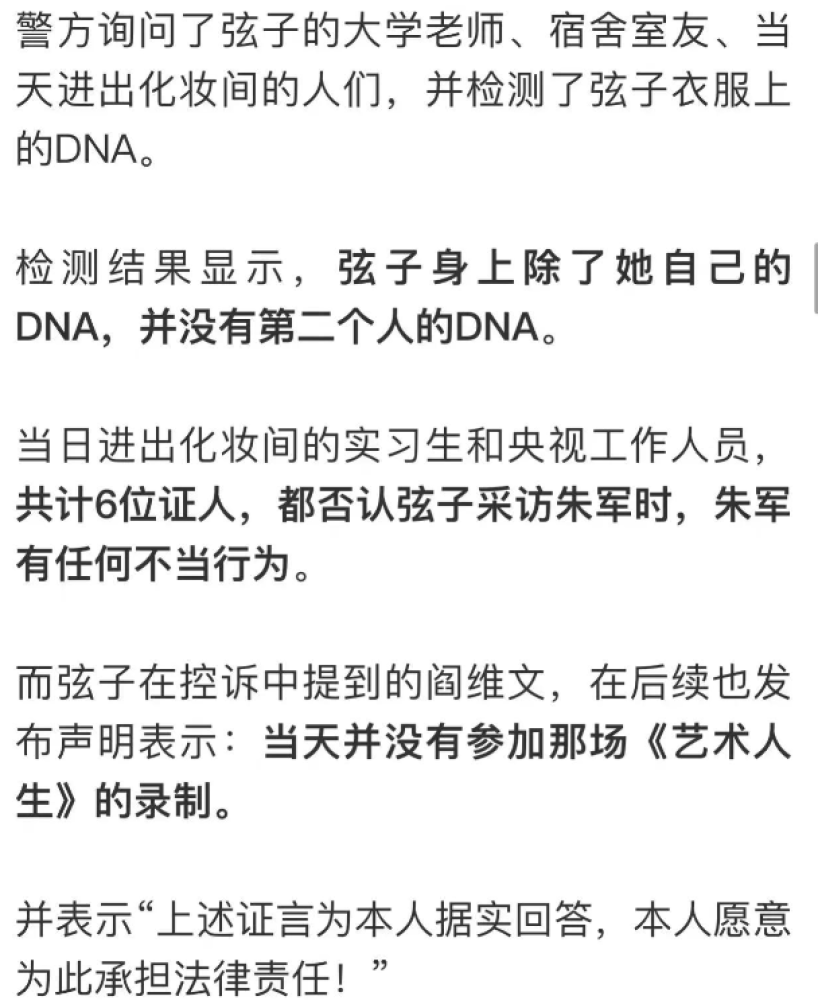 首先,从报警后,这期间警方一直在搜查证据,而弦子并没有拿出实质性的证据,甚至证词也含糊不清,而她时隔4年才出来状告朱军也是一大疑点。