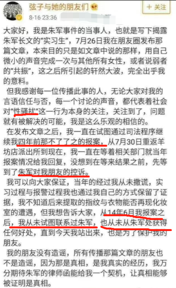 2018年,一位名叫弦子的网友发表的一篇小作文在网上引起轩然大波,她将自己塑造成一个受害者,句句都在暗示朱军是个“披着羊皮的狼”。