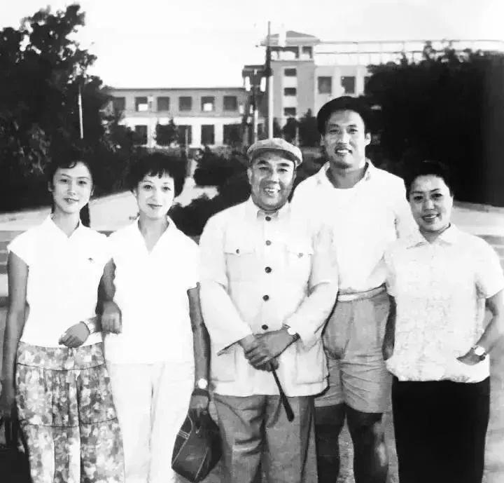 1965年,京剧样板戏《红灯记》主要演员和杜近芳老师合影。左起:刘长瑜、杜近芳、袁世海、钱浩梁、高玉倩。