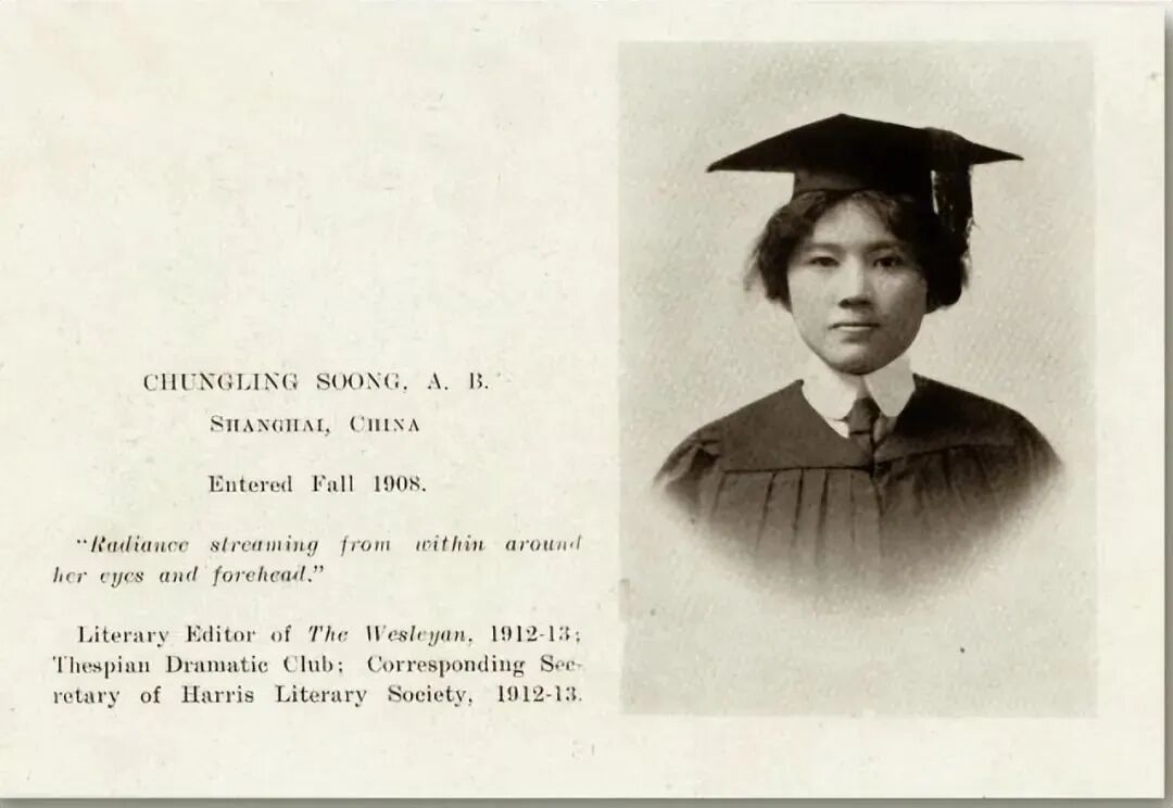 1913年6月,宋庆龄从威斯里安女子学院毕业,获得了文学学士学位。