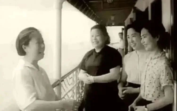 1959年6月底,周恩来夫人邓颖超、朱德夫人康克清、刘少奇夫人王光美、陈毅夫人张茜等在去庐山的船上轻松交谈。