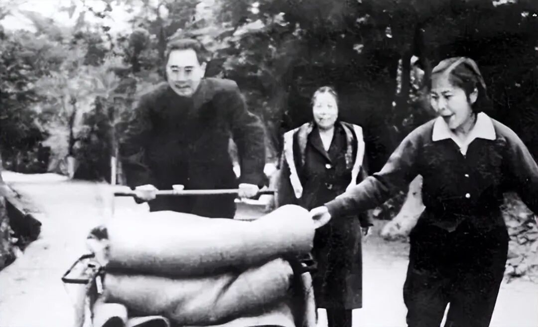 1963年周恩来推小孩车。虽没有自己的孩子,但把全天下的孩子都当成自己的去疼爱,这种父爱,叫人感动!