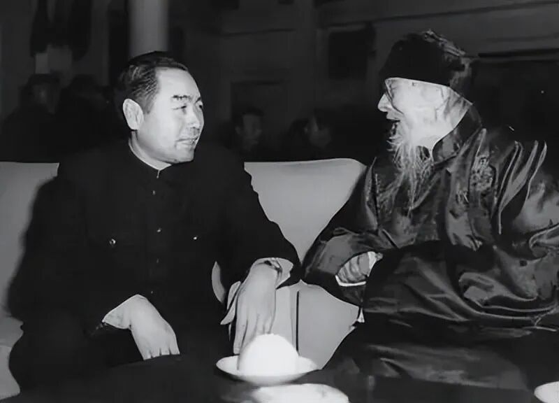 1953年1月,周恩来在庆祝著名画家齐白石九十三寿辰宴会上同老人促膝谈心。