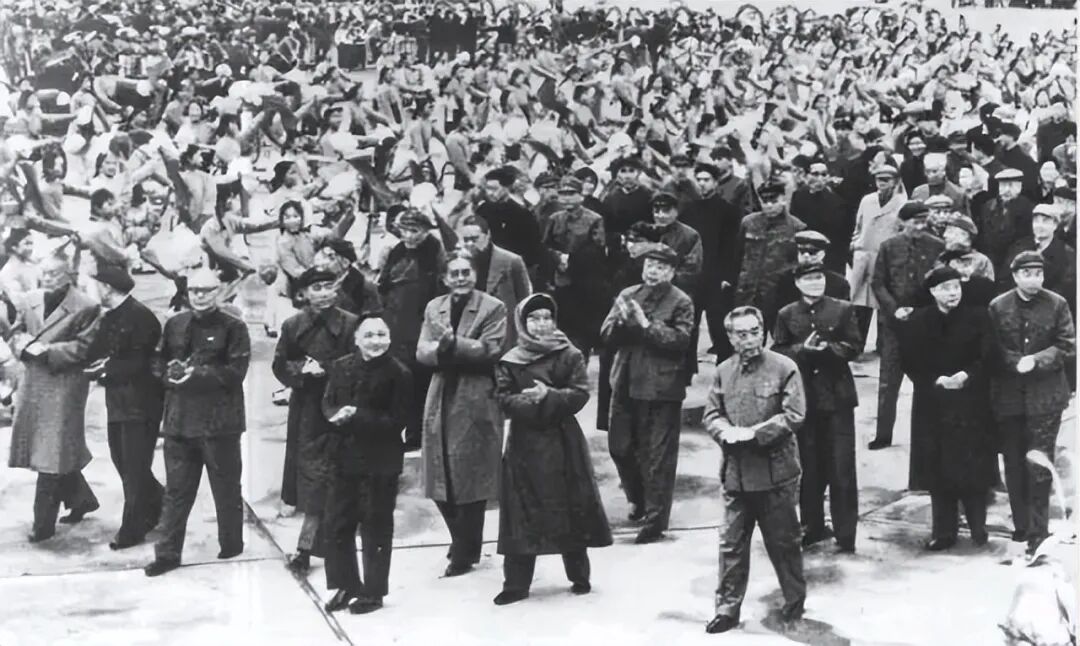1964年10月16日晚,周总理在接见音乐舞蹈史诗《东方红》演职员时宣布我国第一颗原子弹爆炸成功,顿时万众欢腾。周总理开玩笑地说,大家不要跳了,再跳楼板就会塌的!