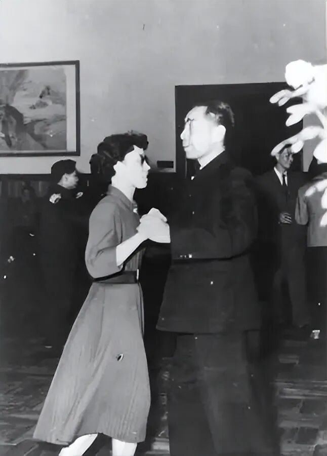 周总理与乒乓球名将邱钟惠跳舞。