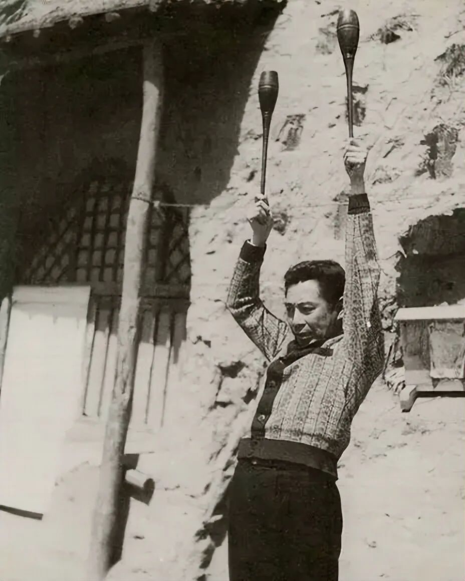 1940年3月,周恩来从苏联治伤回到延安后,锻炼臂力时的情景。