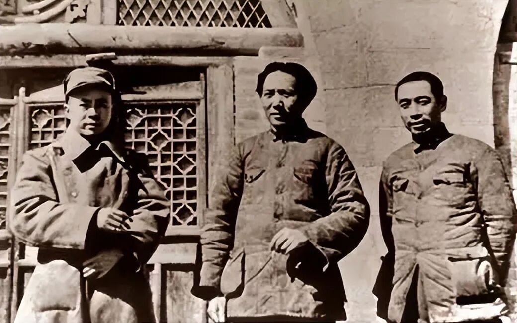 1938年初,毛泽东、周恩来、任弼时在延安