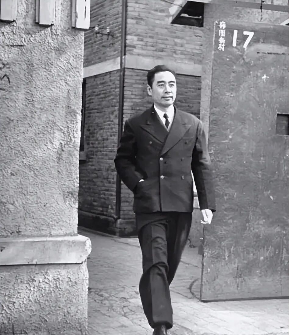 这张“街拍”,周总理一身笔挺的正装,手插口袋,一股说不出的帅气扩散在他的眉宇间,周总理大多数时候都是那般从容不迫,儒雅大方。
