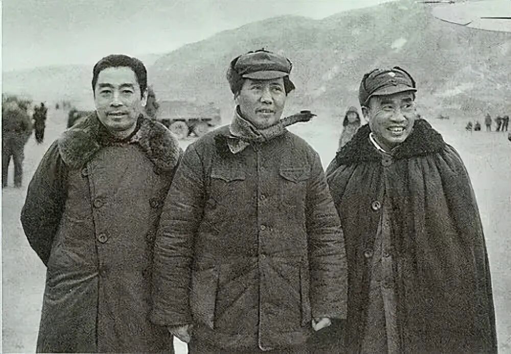 1946年11月,毛泽东、周恩来、朱德在一起