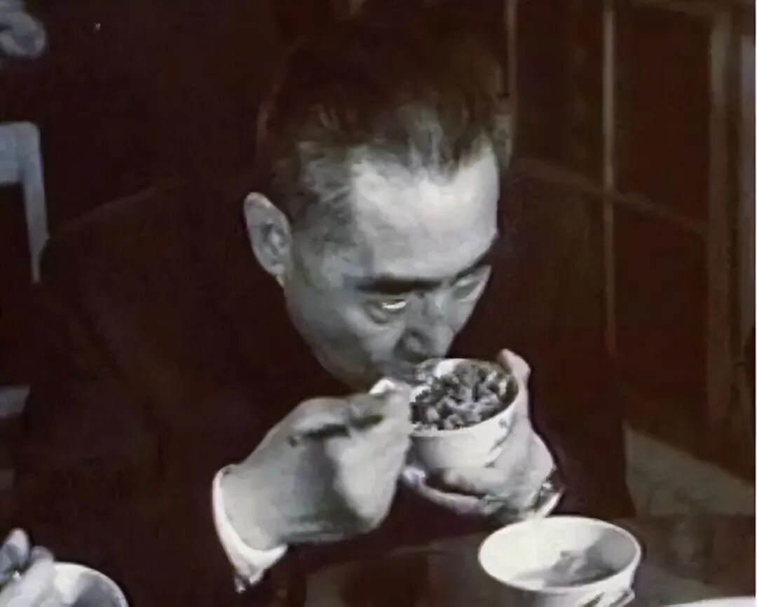 1966年外出视察,周恩来吃饭时,一碗米饭,就着两碟简单的小菜,此情此景,甚为感人。