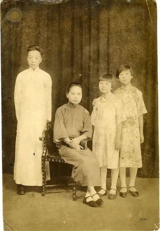 图 | 杨敏如(前排右)、杨静如(前排左)和母亲徐燕若(后排左)、家庭教师徐剑生(后排右)摄于天津照相馆
