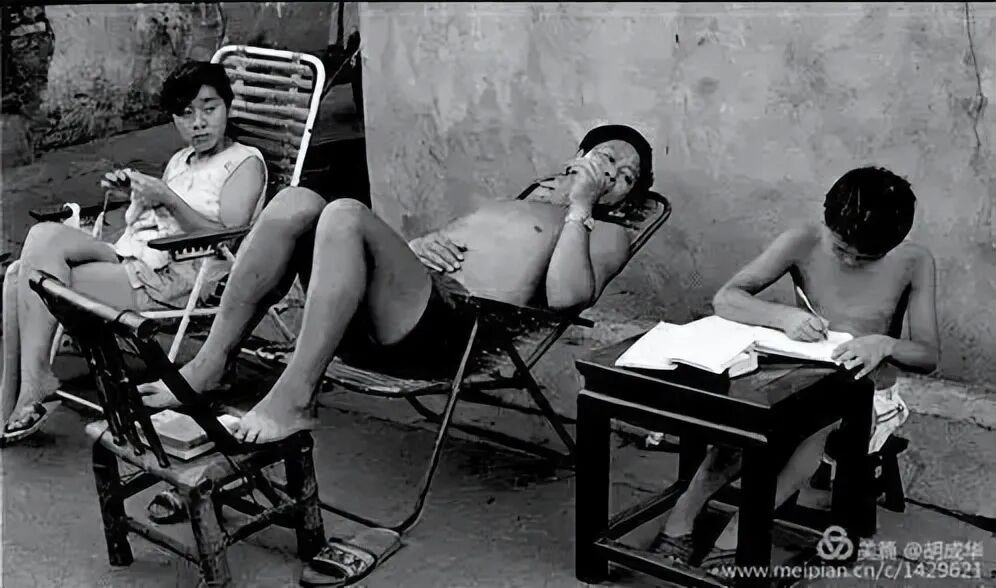 晚饭后,男女老少竹榻藤椅齐上阵,占据好的位子。拿把扇子带壶凉茶,开始吹牛嘎三胡。所谓好位子:一是有穿堂风,二是有路灯。