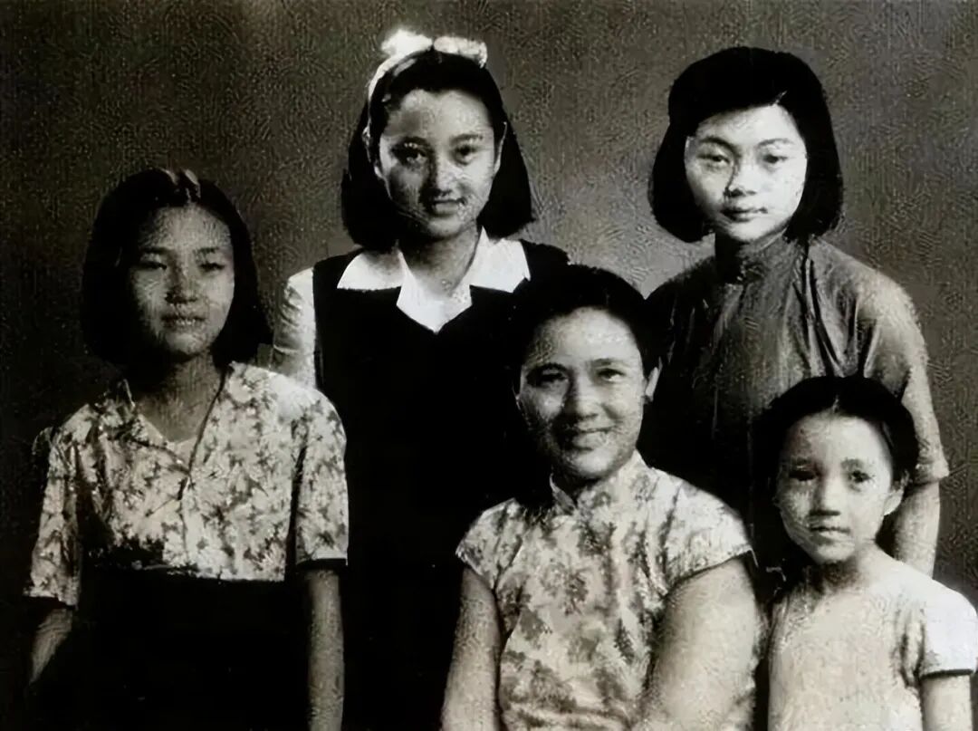 王晓棠(后中)与母亲和姐姐、妹妹摄于杭州(1949年)