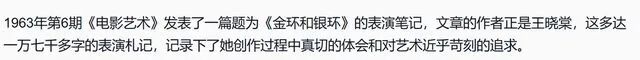 而且她拿着剧本,写了有一万七千多字的表演札记,这本表演札记《金环和银环》曾在《电影艺术》上刊登。