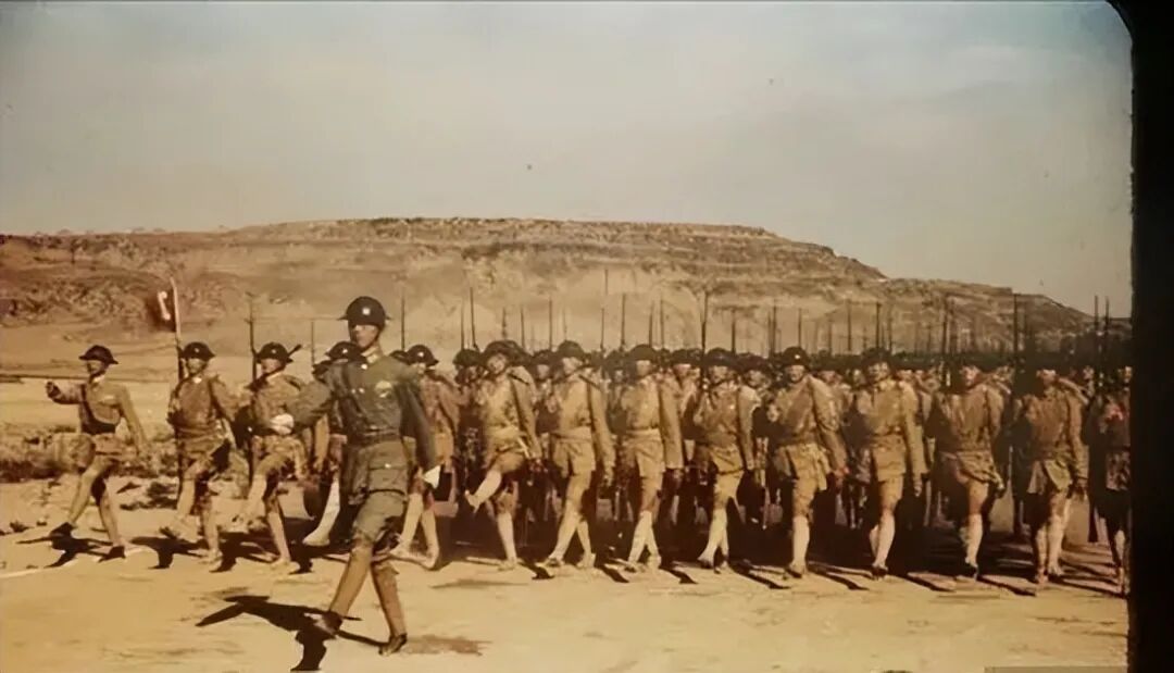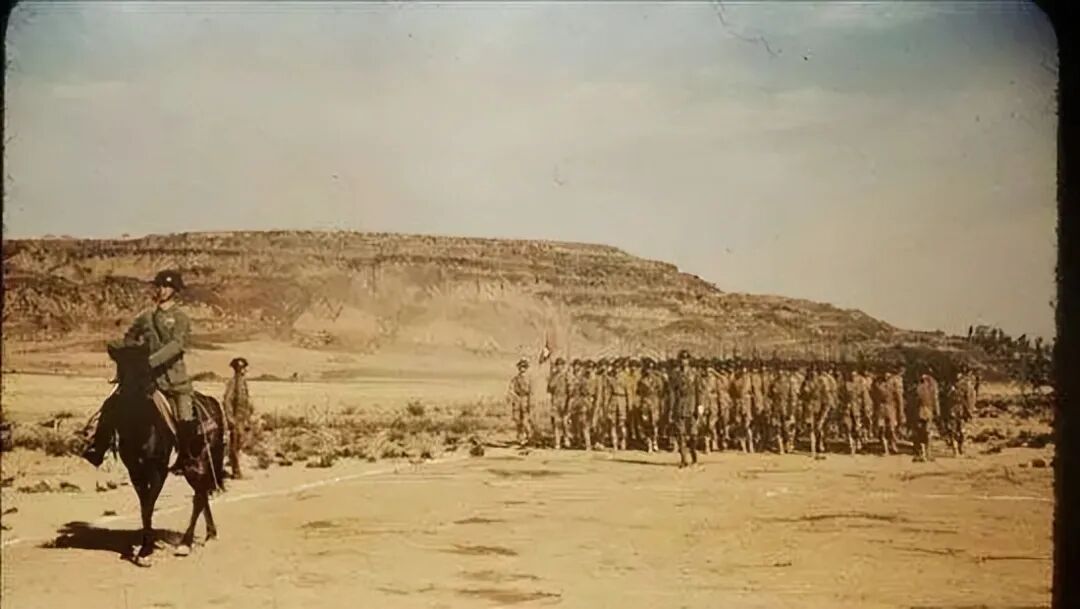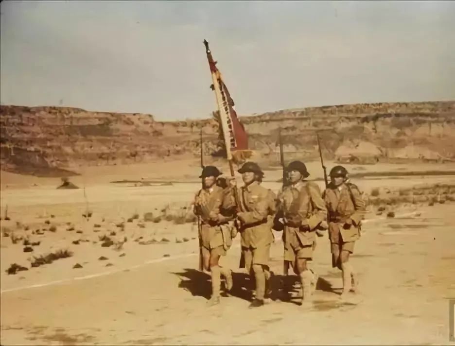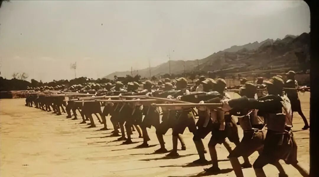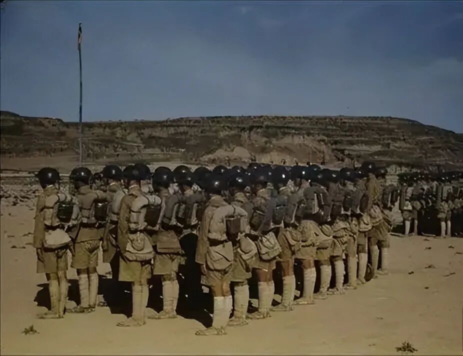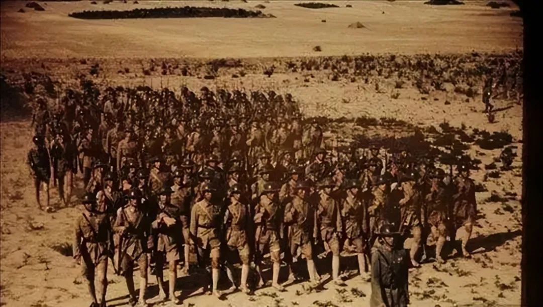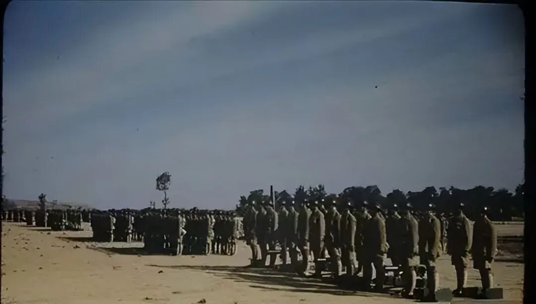 1943年12月,中国驻印军在兰姆伽的美军训练基地整齐地排好方阵,准备接受蒋介石的检阅。蒋介石夫妇刚参加完开罗会议,回程时特意在此地停留检阅这支部队。中国驻印军总指挥是史迪威将军,军长郑洞国,下辖新38师、新30师和1944年编入的新22师、新50师,当时驻印军是中国装备最好、训练有素、最具战斗力的部队。