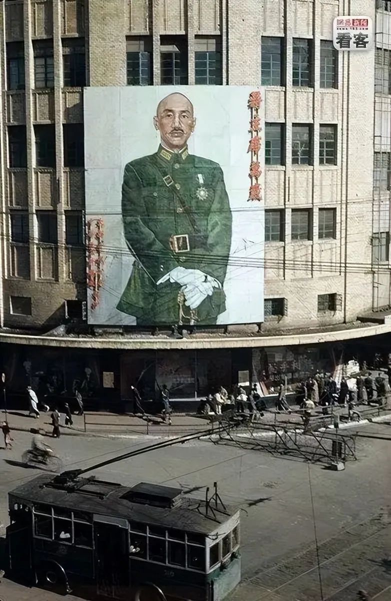 抗战胜利后天安门城楼上高挂的蒋介石肖像