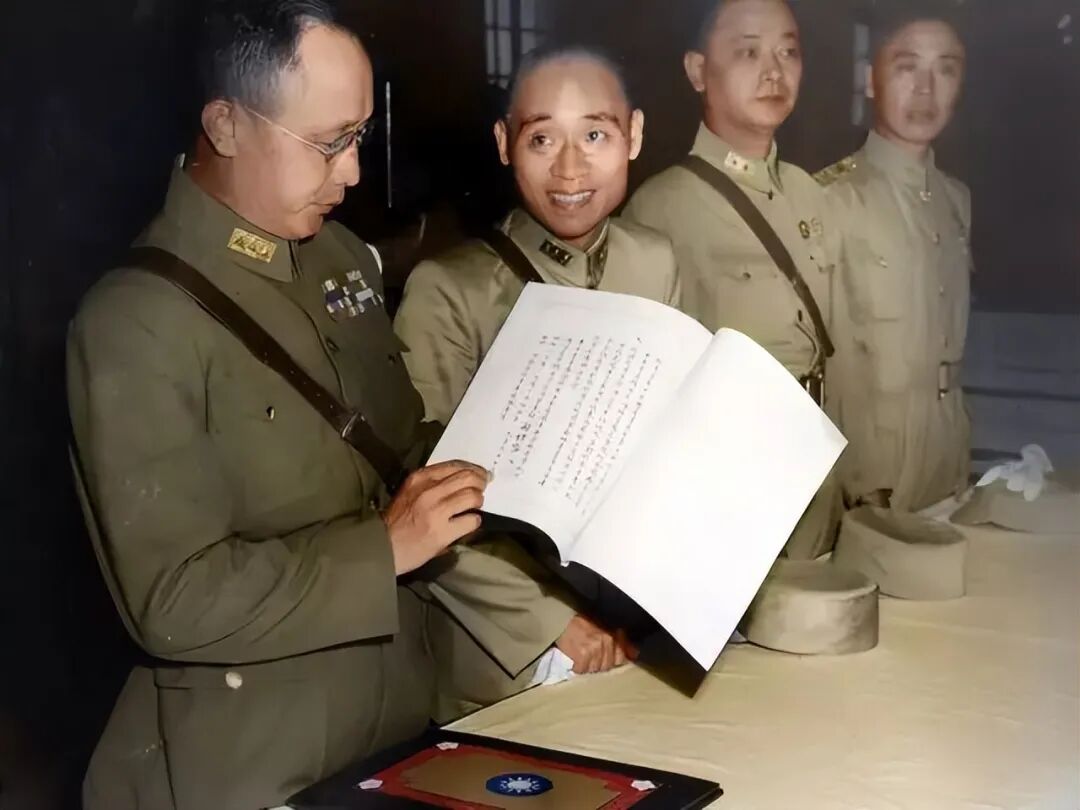 1945年8月21日,芷江受降现场的中方代表席,萧毅肃将军下令日军代表今井武夫投降。