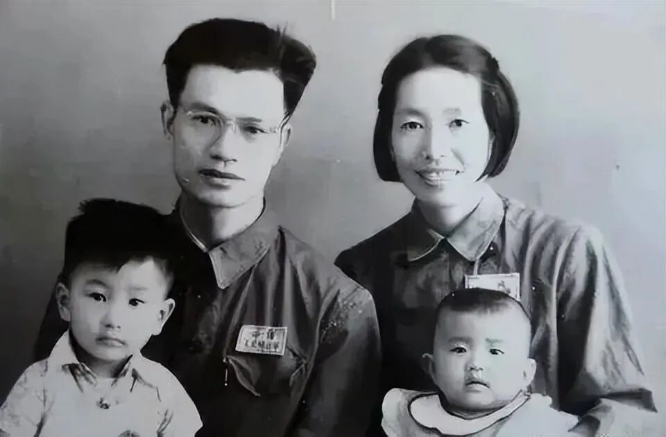 排右一为莫耶,后排右二为方唯若,前排左一儿子方前进,前排左二女儿方丽页