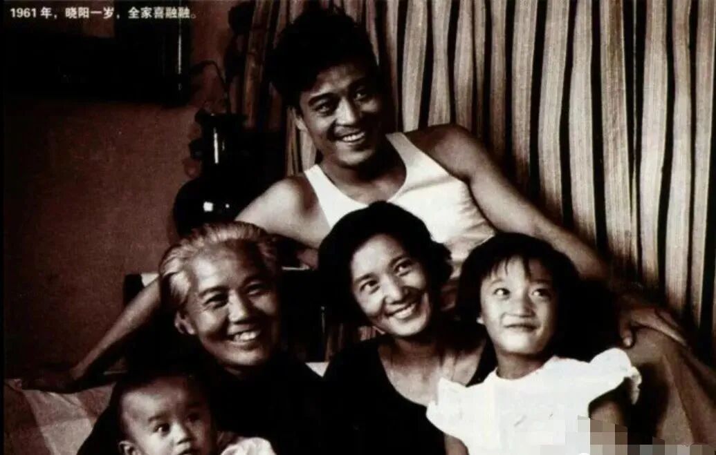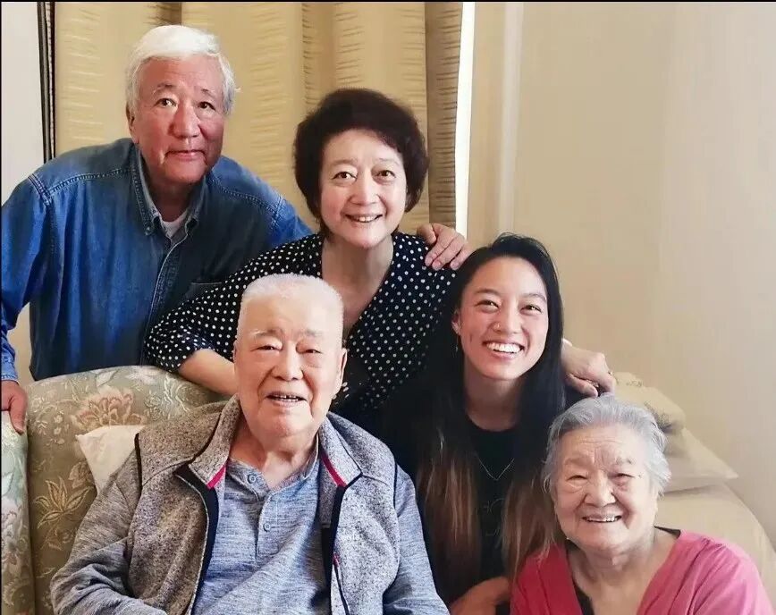 还有老了时候拍摄的全家福,老先生尽管头发花白,但是面色红润,身体状况还是蛮不错了,有明显发福的痕迹,而一旁的老伴杨静则看上去要年轻一点,最起码头发并没有白完,一家人开心的合照,也是透露着幸福。