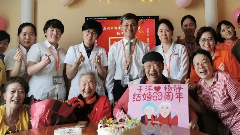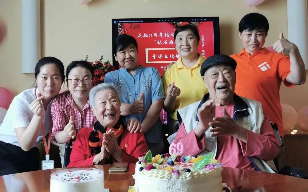 住进了养老院,于洋和杨静没有架子,和陪护人员都相处的非常好,也积极地参加院里的活动,和老人们打成一片其乐融融。两人69周年的结婚纪念日也是和养老院的护工们一起庆祝的。