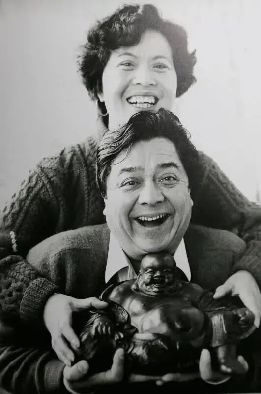 著名相声演员李金斗和他的妻子以及手捧的弥勒佛,构成了《三笑》。