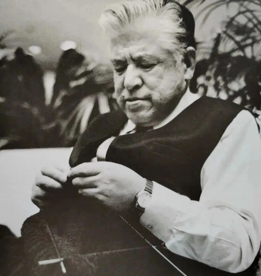 李默然织毛衣。不太清楚这是李默然生活中的自然场景,还是牛群开玩笑一般的摆拍,应该是后者吧。